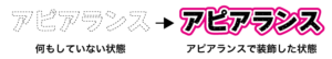 アピアランスは文字を直接加工しているわけではなく、あくまで見た目だけを変化させる機能のために、