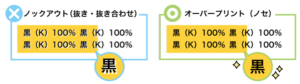 印刷会社によって「オーバープリント」や「ブラックオーバープリント」の対応方法が異なります。