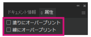 ②確認したいオブジェクトを選択し、「塗りをオーバープリント」「線をオーバープリント」のチェックボックスが入っていないかを確認します。